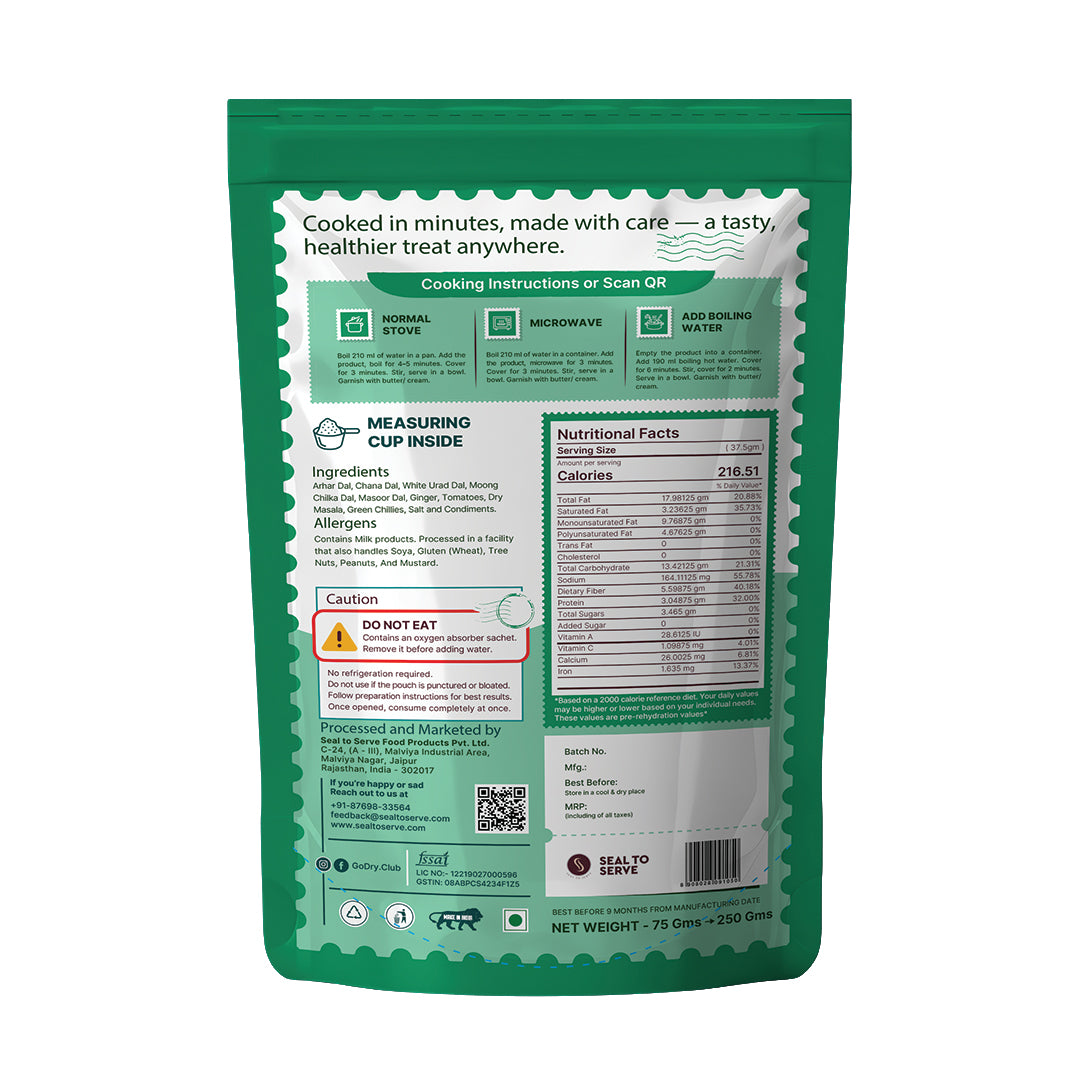 A wholesome mix of Arhar, Chana, Urad, Moong Chilka, and Masoor dals, slow-cooked with onion, garlic, tomato, green chillies, and aromatic dry masala. Comforting, hearty, and full of desi soul.